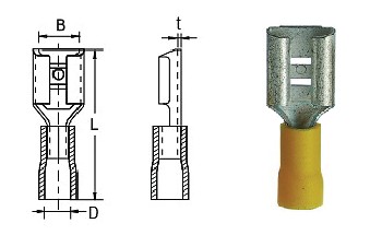 可插入公扁型端子、并可拔除,无需使用工具,节省安装费用。 绝缘外壳内之金属套筒可压紧电线前端绝缘处,保护电线,适用于高震动环境。 内部电线阻挡设计确保插入适当长度 ,提供更高品质的连接。 材质: PVC耐燃材质、铜(镀锡)