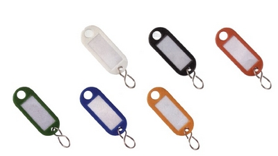 用于标记钥匙,可悬挂于钥匙柜中; 软塑料材质,带孔和S形弯钩。