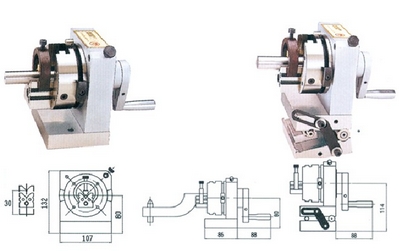 夹持直径:4-30mm 穿过中心孔:23mm V型块调整器:rack&pinion 中心高度:80mm 分割等份:24 净重:10kg