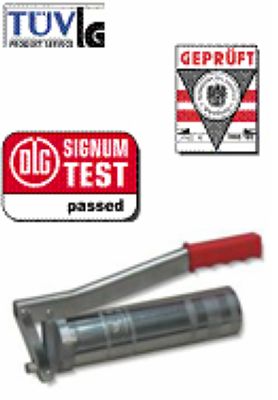 工作压力400巴,最高压力可达800巴;可装入500cm3散装黄油或400克桶装黄油;油脂枪, 通径M10X1,工作压力:400BAR,最大工作容积压力800BAR.