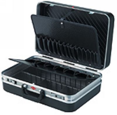 箱体底层高度5 ,可分隔摆放工具,有专门摆放文件的袋子,每一层都可以通过锁扣固定,方便演示;箱体采用耐磨的ABS材料制作,外围中央采用双层铝框加固,采用金属合页、扣锁、符合人体工程原理的手柄;最大载重为20kg;每一层工具固定插袋都采用Con-PearlTM材料;工具箱内部尺寸为(WxHxD):456x170x310 mm;货号 00 21 20 LE:工具箱(空)