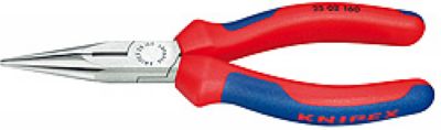 适于电子元件的夹持和剪切;尖形半圆嘴钳口;钳口表面带齿;剪切刀口适于剪切中硬线和硬线;刀口硬度约为洛氏硬度HRC61;长度160,头部抛光,双重双色材料手柄