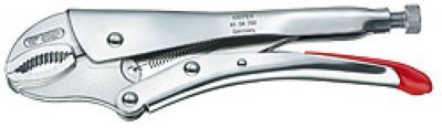牢固夹持圆形物料,型材及平扁物料;大力型;配备有调节螺钉和释放杆;单手操作;由于肘杆作用,具有较大的夹持力;钳体:采用高强度特殊工具钢材料;嵌入式头部,采用铬钒钢模锻而成;头部用于夹持圆形工件,配备有断线刀口;长度300,头部镀镍,镀镍手柄