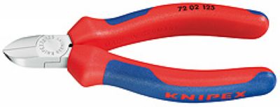 无偏刃,用以齐平剪切塑料元件上的熔渣和软材料,如铅材料等;配备复位弹簧;长度125,头部抛光,双色双重材料手柄