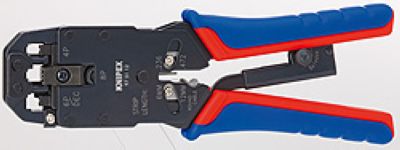 能剪切和剥线无屏蔽带状电缆的专业工具;压线6芯和8芯欧式插塞,型式RJ11/12(9.65mm宽)和型式RJ45 (11.6 宽);平行压线确保整个压线准确精确平整;精密的压线模块和整体锁定(自身释放机械装置)设计,保证在反复压线时能保持较高质量的压线标准;较长的切割刀片和剥线刀片能适用于最大直径为6mm和12mm的电话线的剪切和剥线;长度190,应用范围欧式插塞,压接范围RJ11/12(6芯)9.65mm、RJ45(8芯)11.6