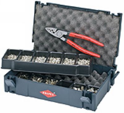 TANOS MINI-systainerTM包装(牢固的塑料盒体);两个可堆叠的塑料插入格,每个各六列,用于装连接端子;钳子97 71 180,端子数量各200的40/41/42/43/44;各150的45/46;各50的47/48