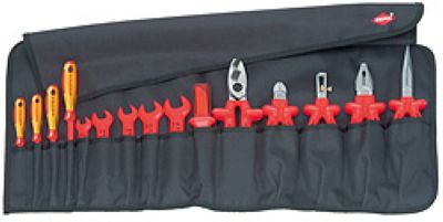 涵盖了KNIPEX大部分通用的绝缘工具,符合DIN EN/IEC 60900:2004;采用聚酯面料;箱内有:03 07 200 电工绝缘钢丝钳、11 17 160 电工绝缘剥线钳、26 17 200 电工绝缘尖嘴钳、70 07 160 电工绝缘斜嘴钳、95 17 200 电工绝缘电缆剪、98 00 10 电工绝缘扳手、98 00 13 电工绝缘扳手、98 00 14 电工绝缘扳手、98 00 17 电工绝缘扳手、98 00 19 电工绝缘扳手、98 20 25 一字绝缘螺丝批、98 20 40 一字绝缘