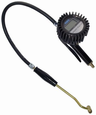 数字式压力表: ? 80,过压保护到 16 bar,橡胶保护套,压力范围: 0 - 12 bar, 精密等级 0.05 bar(误差 < 0.08 bar);工作温度-10 °C 到 +60 °C;双面推进式连接头双头连接用于并装双胎和机动车辆;也可用于充氮气