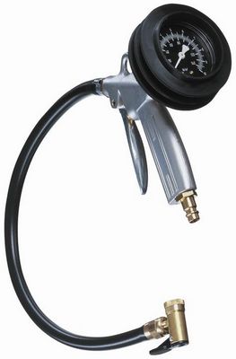 压力表 (质量等级 1) ? 63 过压保护压力表 带金属外壳和塑料保护套 压力范围 0-10 bar / 0-140 psi, 精度 0.1 工作温度-10 °C 到 +60 °C 适用于所有带VG8螺纹的轮胎气嘴(客车,货车,摩托车,自行车) 连接插头 DN 7.2配快速接头 可选: G 1/4 进口螺纹 也可用于充氮气