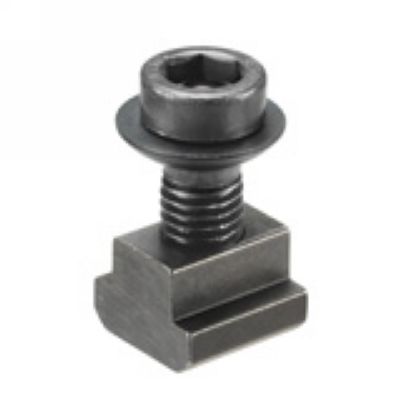comprising 3 DIN 6912 hexagonal bolts, 3 DIN 508 T-groove nuts and 1 DIN 6319C spherical washer.