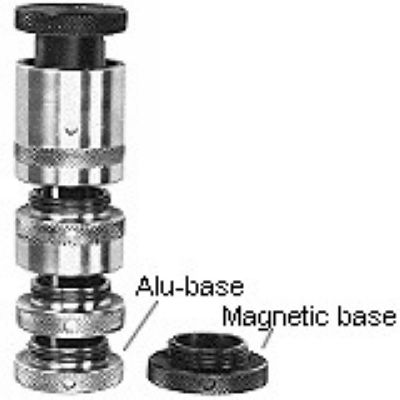 Scraper ring protects screw jack spindle against chips. Centring hole dia. 12 mm. Spindle tempering steel, blued. Trapezoidal thread, self-locking with end stopbody. Composed of: - screw jack - intermediate ring 12.5 mm - intermediate ring 25 mm and - Alu