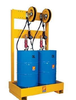 配有: 2个气动油泵(R=3:1bar) 带壁挂功能接油槽 2个10m,R1 1/2” 提油软管卷盘 2个1500mm R1 1/2”油管 2个数显流量计数提油喷嘴