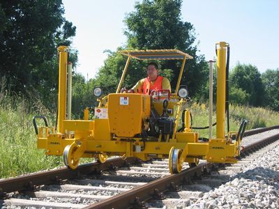 用于钢轨和整轨排提升和旋转 作为一个移动的液压起重机使用 提升能力 20 t,提升高度 900 mm, 回转宽度 230 mm 液压夹轨钳 水准仪保持正确的水准 开关轨道设备