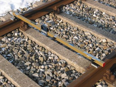 测量范围 轨距1435 mm; 1415 mm 到 1475 mm 护轨轨距 1385 mm 到 1405 mm 此处两个护轨距,也许是翻译理解不到位 护轨轨距1345 mm 到 1361 mm 槽宽30 mm 到 83 mm 超高-30 mm 到 +200 mm 测量精度 +/- 0,5 mm 最小刻度1mm