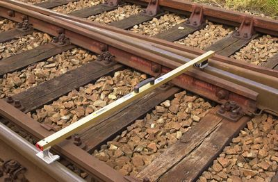 轨道建设和维护的测量工具 所有的数值显示在屏幕上,一目了然 材质是镀金铝管,集电子学和测量力学为一体 有测量轨距的旋钮