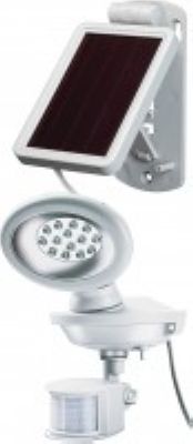 14 bright LEDs for clustered light. Solar lamp with infrared motion detector and separate solar module. Horizontale and vertical pivoting solar lamp. Pivoting motion detector with max. detection angle 180° and max. range 10 m. Duty cycle adjustable betwee