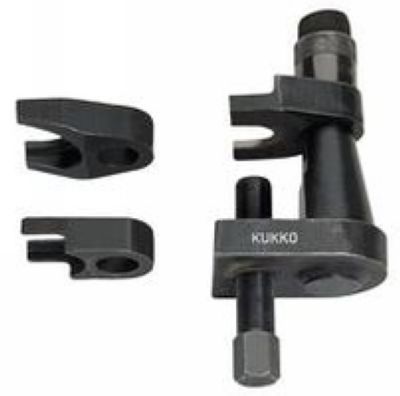 Schweres Spezialwerkzeug zum Ausdrücken der Kugelzapfen beim Ausbau der Kugelgelenke z. B. an Spurstangen, Lenkhebeln, Achsaufh?ngungen, Stabilisatoren etc. Die 3 austauschbaren Abdrückgabeln erm?glichen die Anpassung an die jeweilige Kugelgelenkgr??e. Kr