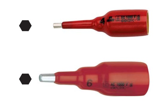 用于内六角螺钉 在带电情况下和棘轮扳子或延长杆375139一同使用 高品质铬钒钢材质 双层安全绝缘 印着:规格、VDE 1000 V IEC 60900:2004