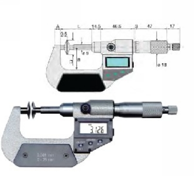 碟形测砧,用于测量齿间距和中心齿轮: 液晶显示,读数清晰,公英制示值转换 独特按键,ABS完全/INC渐进测量系统 任意点置零,开关功能,显示时间 夹紧杆能快速、准确定位 棘轮测力,电池SR44 大于25mm的外径千分尺配有校对量杆