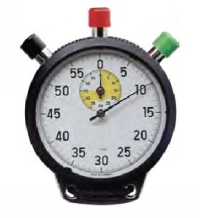 抗震、抗磁,指针式机械秒表,ABS塑料表壳, 表壳直径约55mm,不断裂发条,背面上弦, 用途广泛,具有普通秒表功能,累加计时功能, 及时复零并启动功能,右按钮为启动按钮, 中间按钮为停止按钮,左按钮为及时复零和启动按钮。